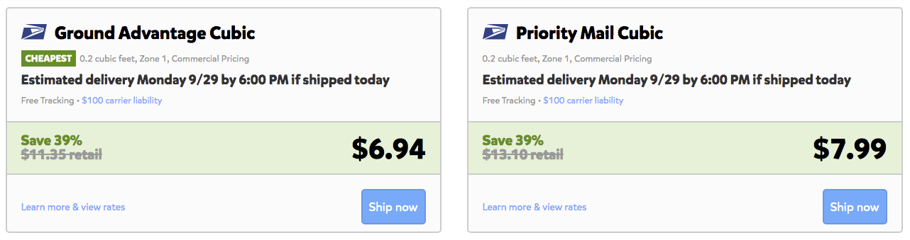 Now we will assume that the package weighs the same, but is smaller, so it qualifies for Tier 2 Cubic rates.
