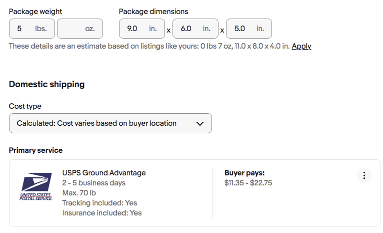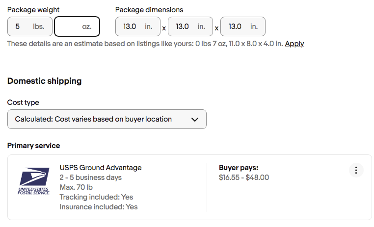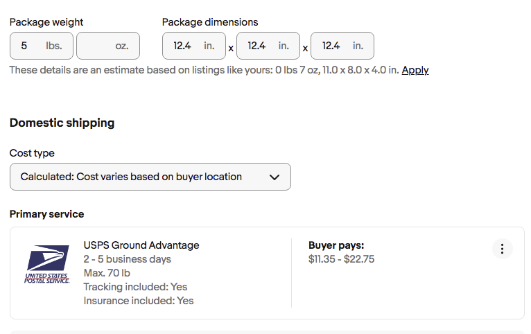 Since I have my eBay preferences set to charge retail rates for USPS, eBay can’t show the Cubic rates and instead shows rates as if the package does not qualify for Cubic rates. Cubic rates are not available at retail locations.