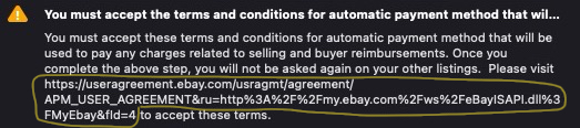 Thank you. I’ll post my next listing through the website/My eBay, just to accept these terms.