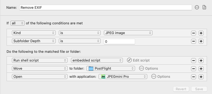 The result are very small [file size wise] images that do not have any human identifiable differences in quality and I drag those into my GS layout template. Since adopting this workflow over a year ago, I’ve not had any beachballs with GS, nor have I had blurry images rendered within GS [the images would not be blurry when posted to eBay, but they would look out of focus in GS, and I didn’t like that since I’d have to make sure I didn’t make a mistake when shooting the image and it really was out of focus]. I’ve attached screenshots here. I Need to explain the script as I used to run /usr/bin/shortcuts but Apple broke that [the GUI shortcuts works, but you can not run automations from Hazel using that], as they forgot to sign the command line app, so I wrote a very basic shell script that runs in Hazel.