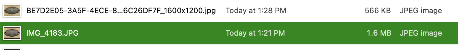 As an example, a photo I literally took an hour ago is (after editing and cropping in Photos) a 5.1Mb HEIC image from my phone, captured at 2347 × 2854. Exported, it’s 1.6 MB. If I export as Large Size, it turned out 446 KB and sized 1053 × 1280, which is more than enough for eBay listing.