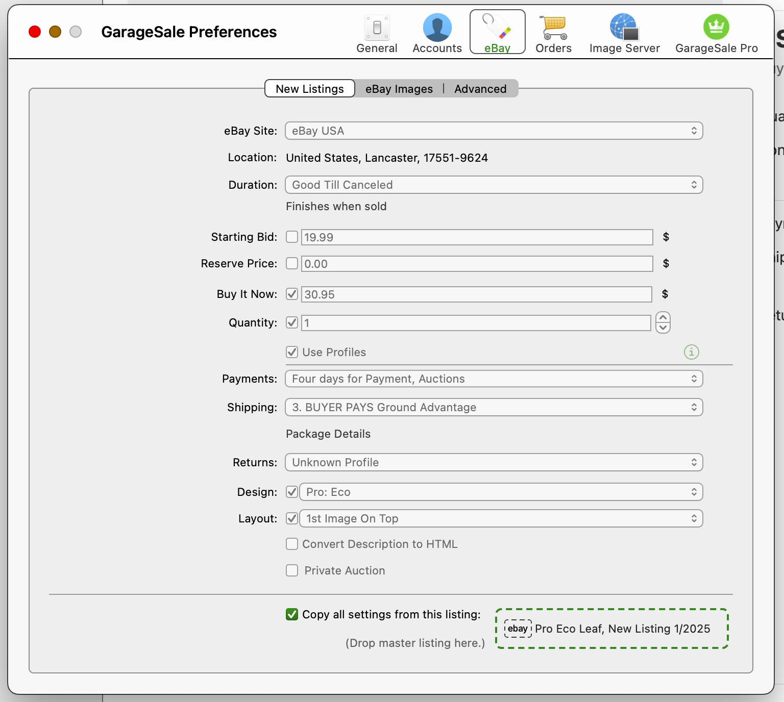 Unfortunately I don’t use just one “master” template but have an entire folder of templates based on the kind of item I am selling. Each template is the same, content wise - they all have that filler text string “replace…” and that’s it. The differences with each template have to do with the eBay and Store category, the attributes, the shipping and return polices, the condition, and the lot size. Each template is named by using the Listing Title field to name it, and each template contains no photos, and just that 3 word text. When I need to list something, I generate duplicates of the template, and compose all text in Drafts [since typing in GS is a hit or miss with the focus issues]. I will at times attempt to tweak a listing title after the fact [fighting with GS taking the focus away from the field], and if I notice an issue/typo in the listing description, then….sigh, it’s a process to try and select all and type “text here” or something, as select all [command-A] rarely works for the listing description field.