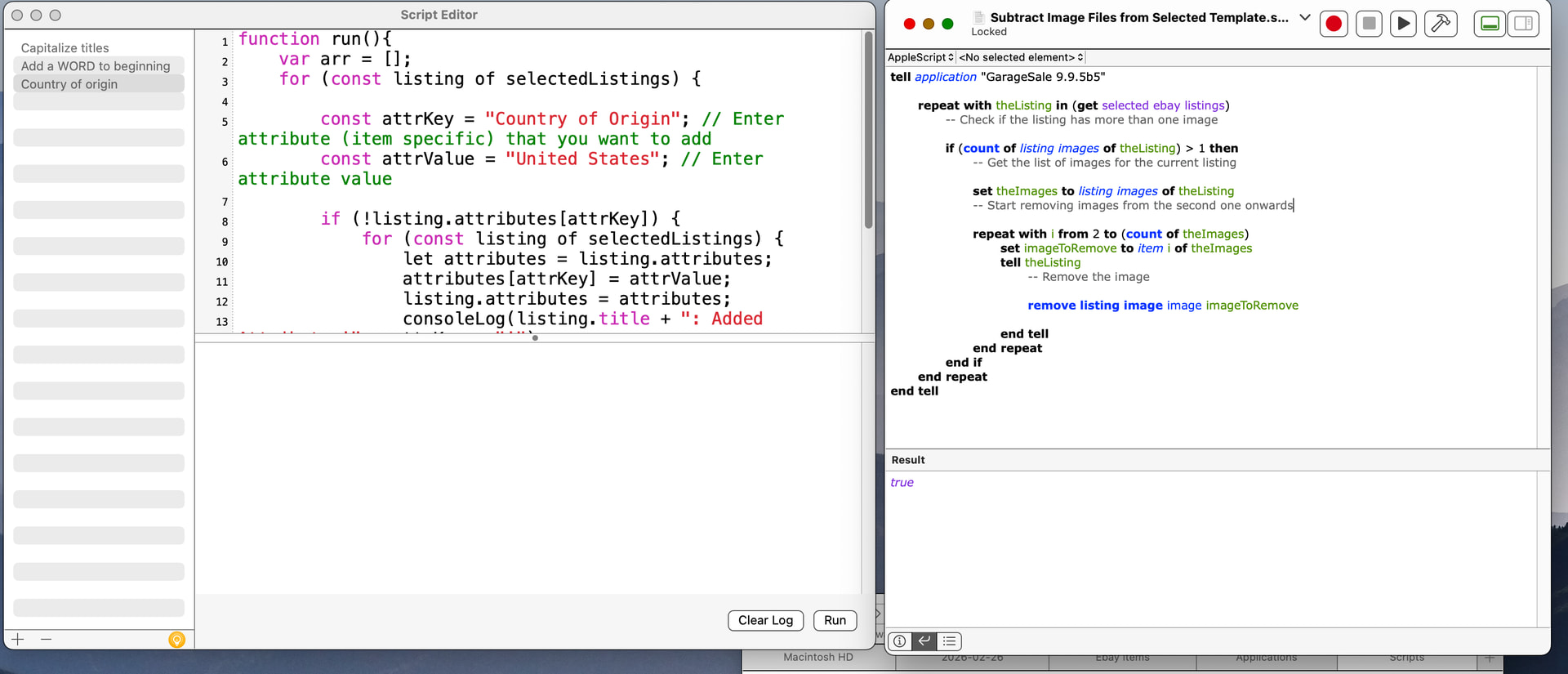 To use this script open GarageSale’s script editor, click the + button and paste the script. Select one or more listings in GarageSale’s main window, then click the “Run” button in script editor.