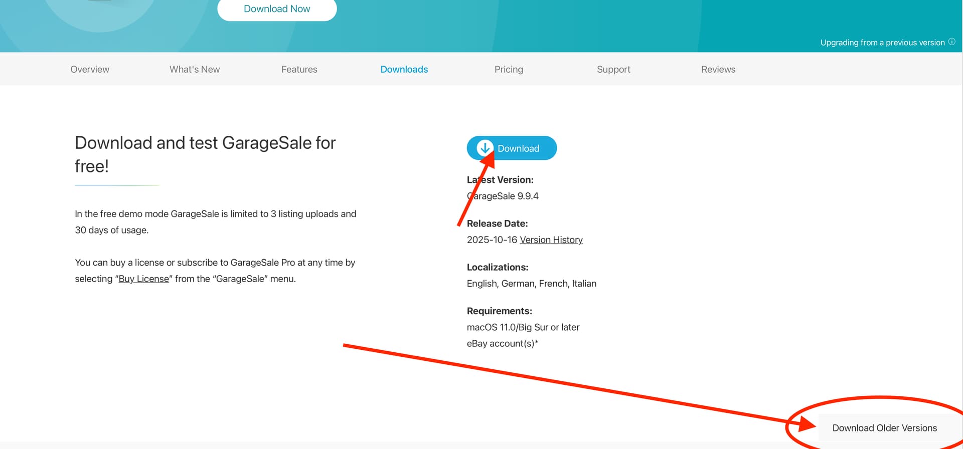 Doh! I didn’t even see that “download older versions here” link…thank you! Though for me the older version is 8.4.1 which is a touch too old [I don’t think it functions since the eBay API has changed since 8.4.1 was released in January 2022].