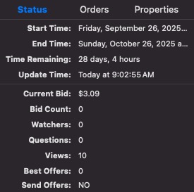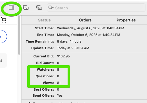 But I digress. I don’t spend time looking at the views though sometimes I will notice that an item of mine has a lot of views and watchers, but it doesn’t do anything to make me change anything. I might even just stop the listing and 24 hours later re-list it. When I wait that time span, the folks who were interested in the item when I closed the listing, also get an e.mail stating it is back, and usually within 24 hours of my re-listing, the item sells.