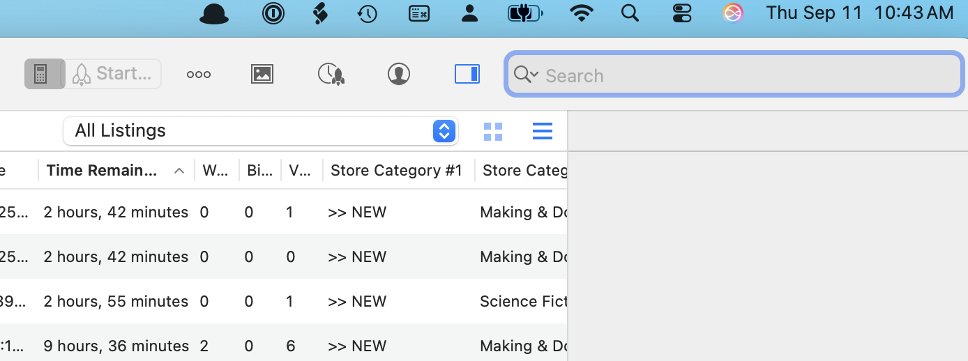 As mentioned in this post the search bar in GarageSale disappears and cannot be recovered without restarting the app whenever I view listings in a pane other than the Listings view. All Find menu items are greyed out as well, and nothing can be found by searching in any pane once this happens.